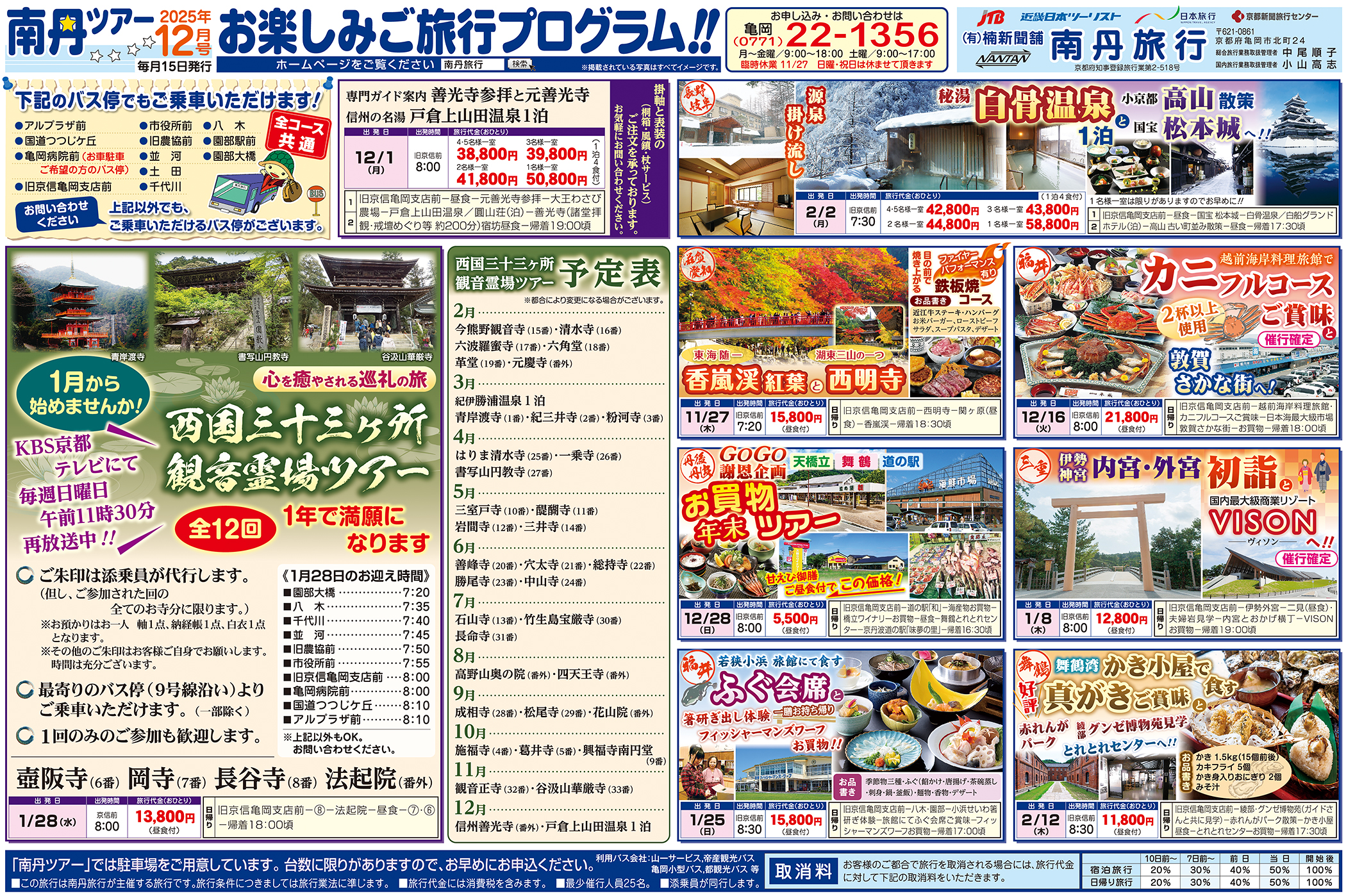 お申込み・お問い合わせ 南 丹 旅 行 0771−22−1356